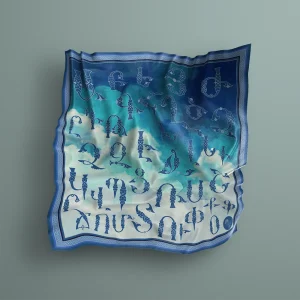 Այս մետաքսե շարֆը պատկերում է հայկական թռչնատառերը՝ կապույտ երանգների վրա։ Դիզայնը համատեղում է ազգային հպարտությունը ժամանակակից ոճի հետ։ Շարֆը նուրբ ու վառ շեշտադրում կդառնա ձեր կերպարում
