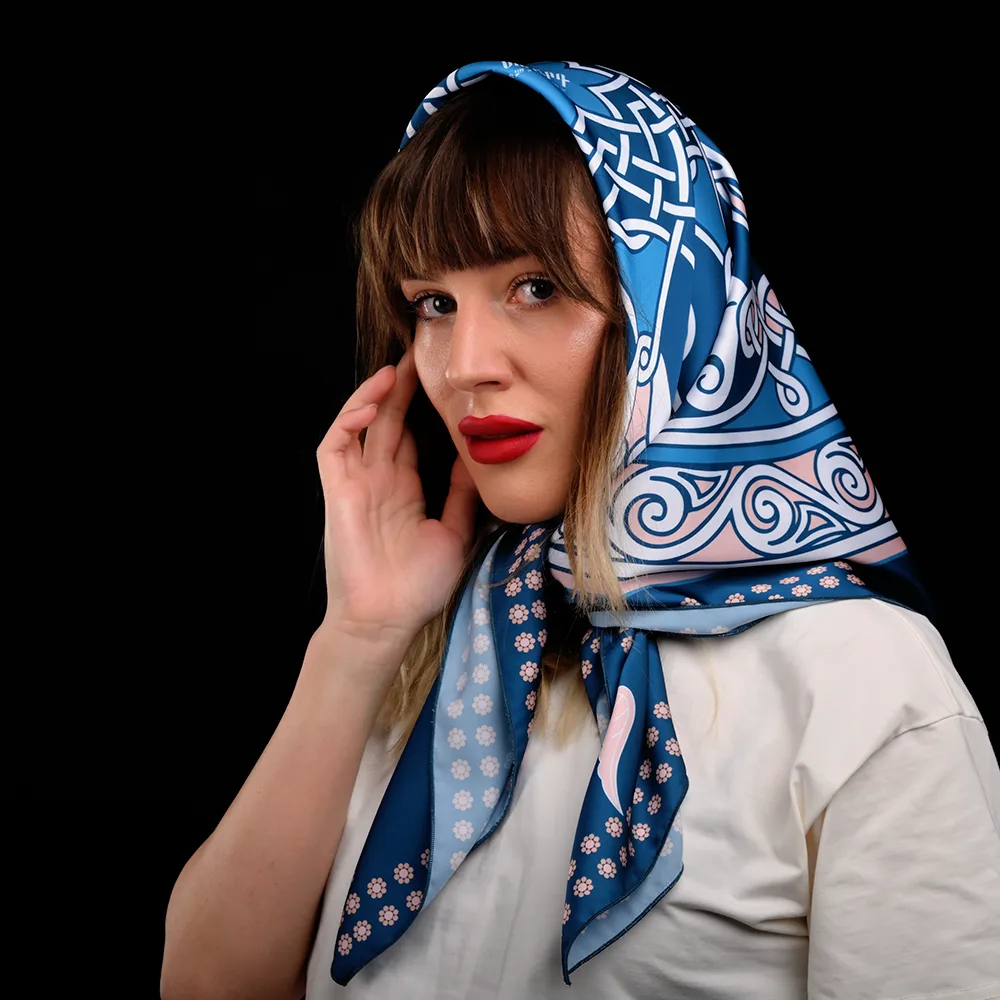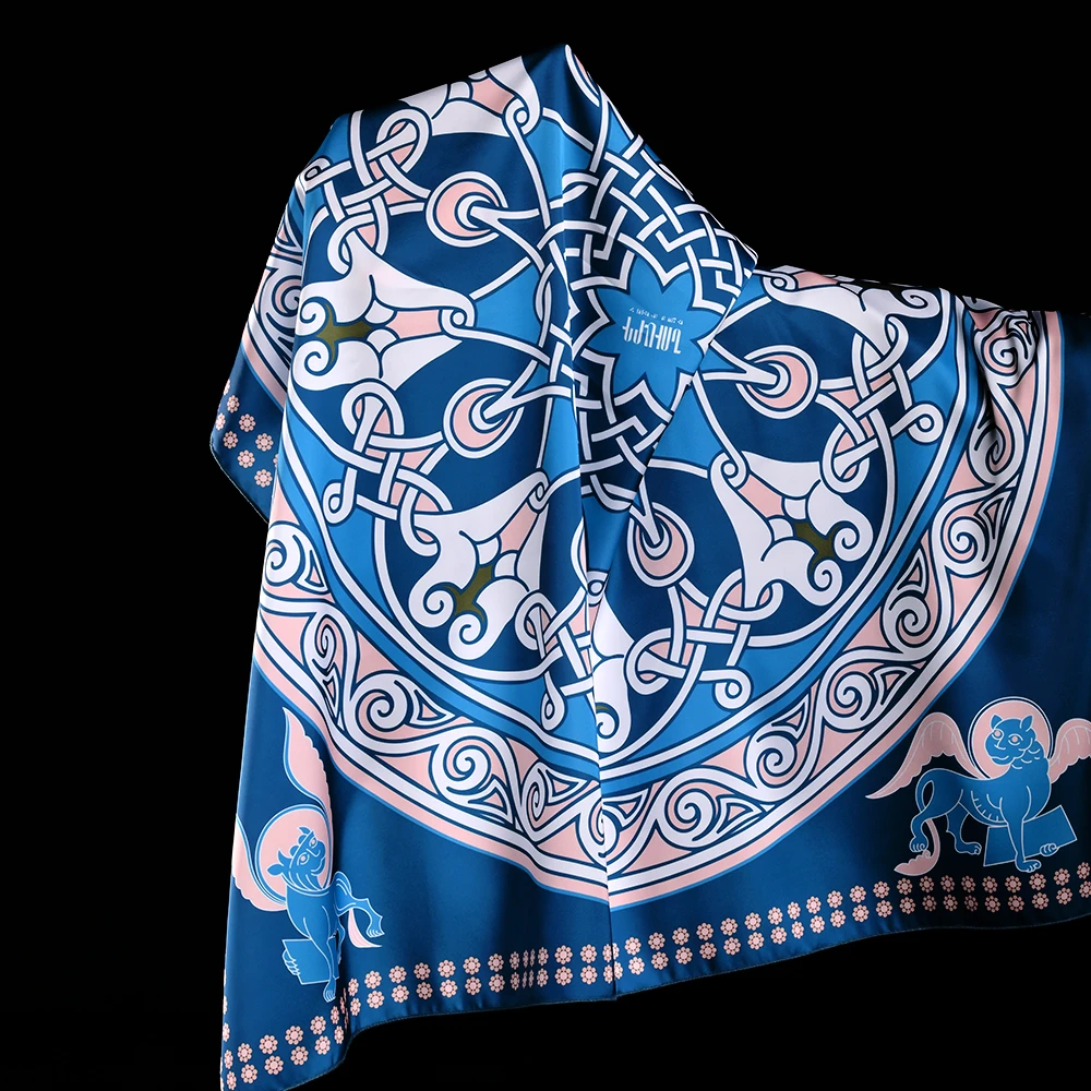 NUARD's silk scarf is inspired by Armenian culture. Its patterns are drawn from medieval and Cilician Armenian ornaments, the symbol of strength—the lion—and Urartian art. These unique designs are combined with the delicate and vivid colors of Van Gogh’s "The Blossoming Almond Tree." This silk scarf is not only beautiful but also carries a story, enriching your style and making it truly unique.