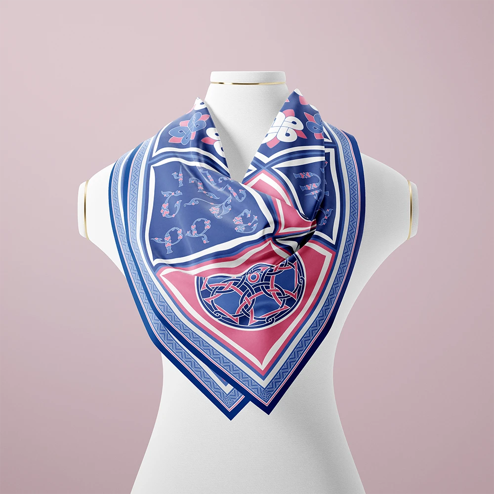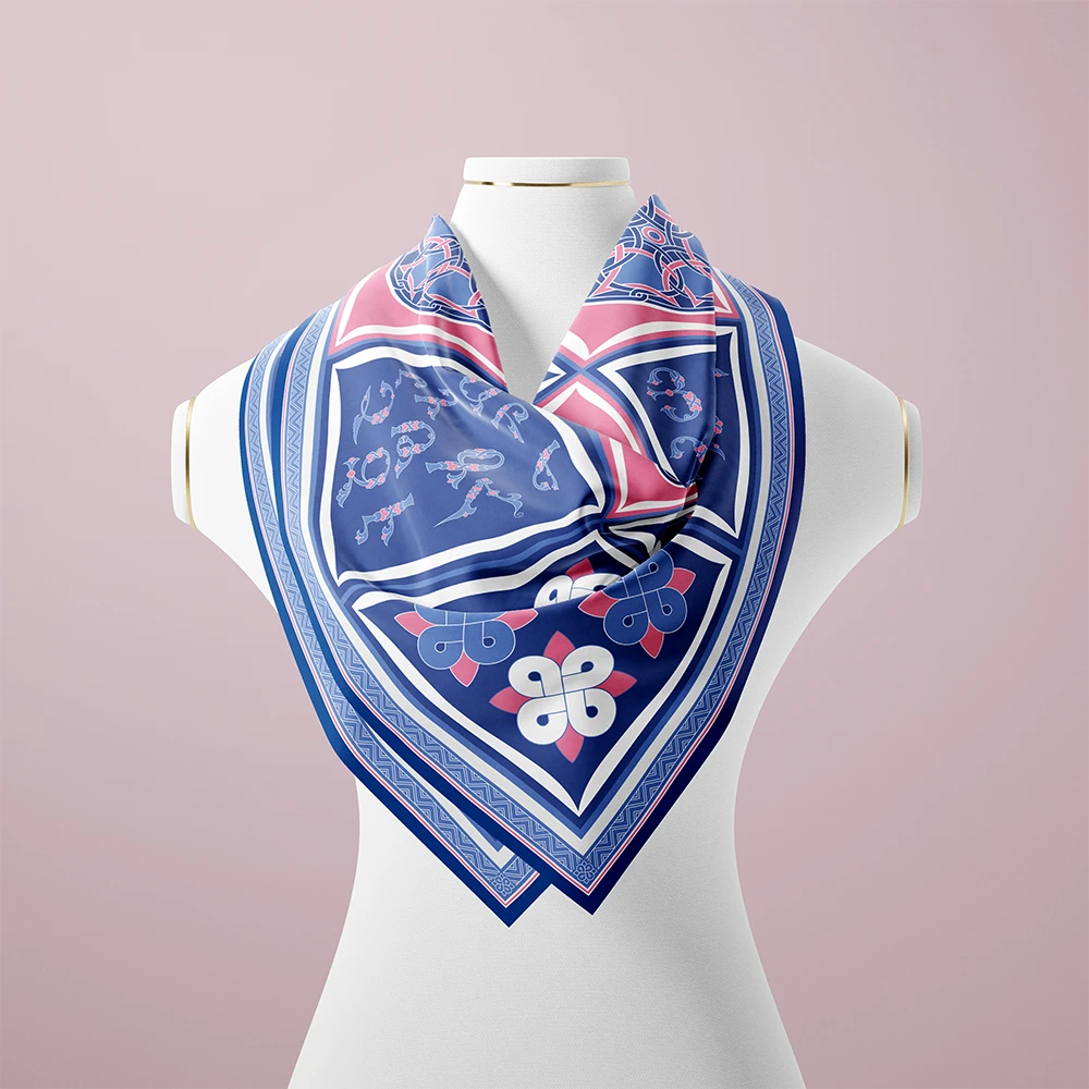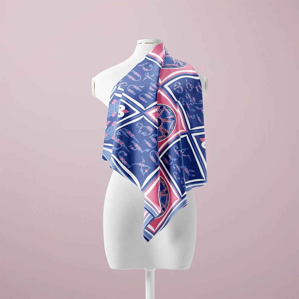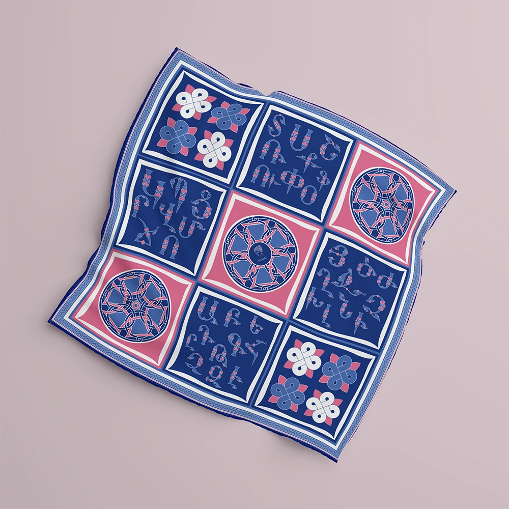 Anahit’s exclusive silk scarf combines traditional Armenian design with contemporary aesthetics. The Armenian letters in shades of blue and delicate pink, inspired by the colors of Armenian landscapes, create a unique atmosphere that highlights the wearer’s individuality