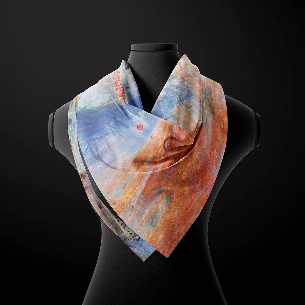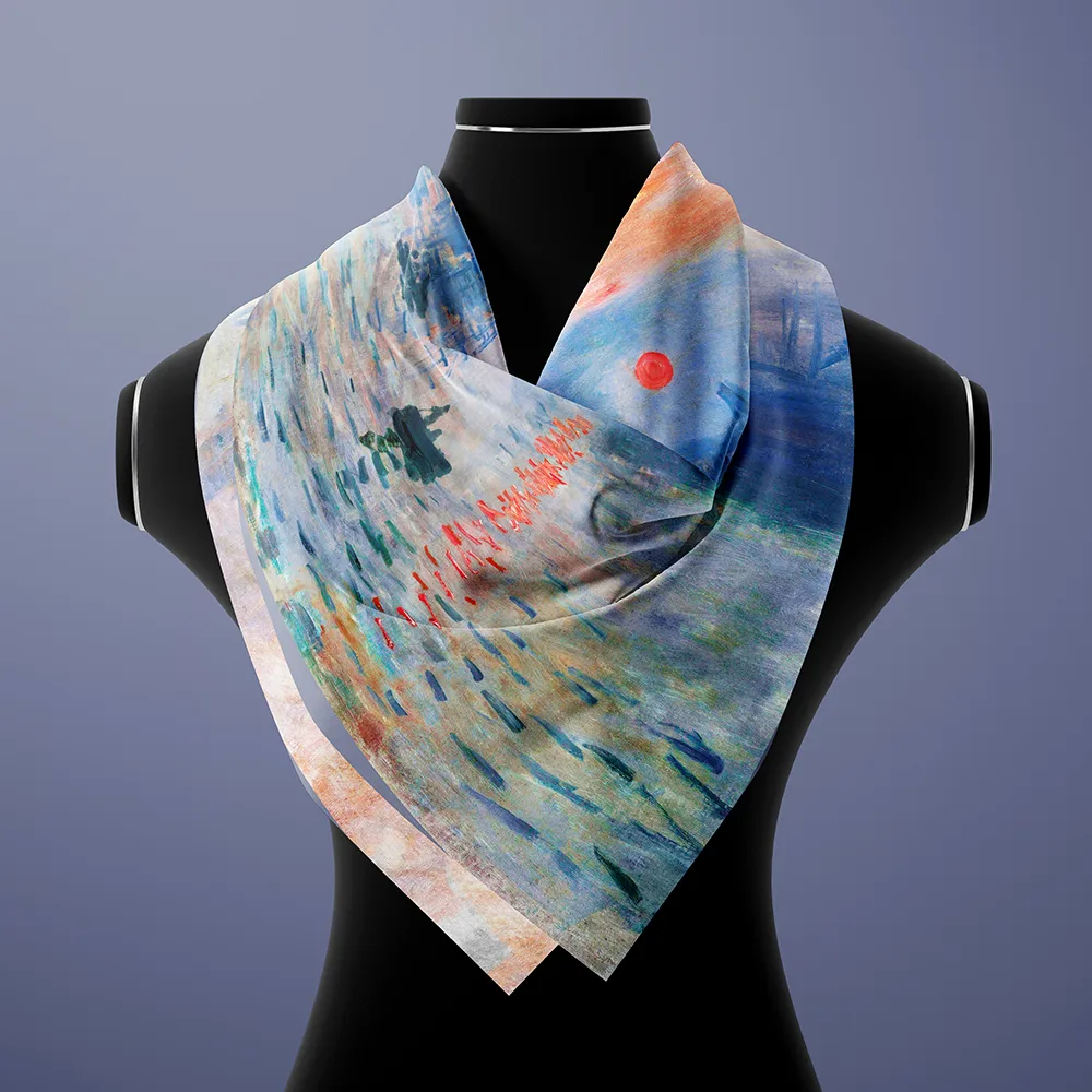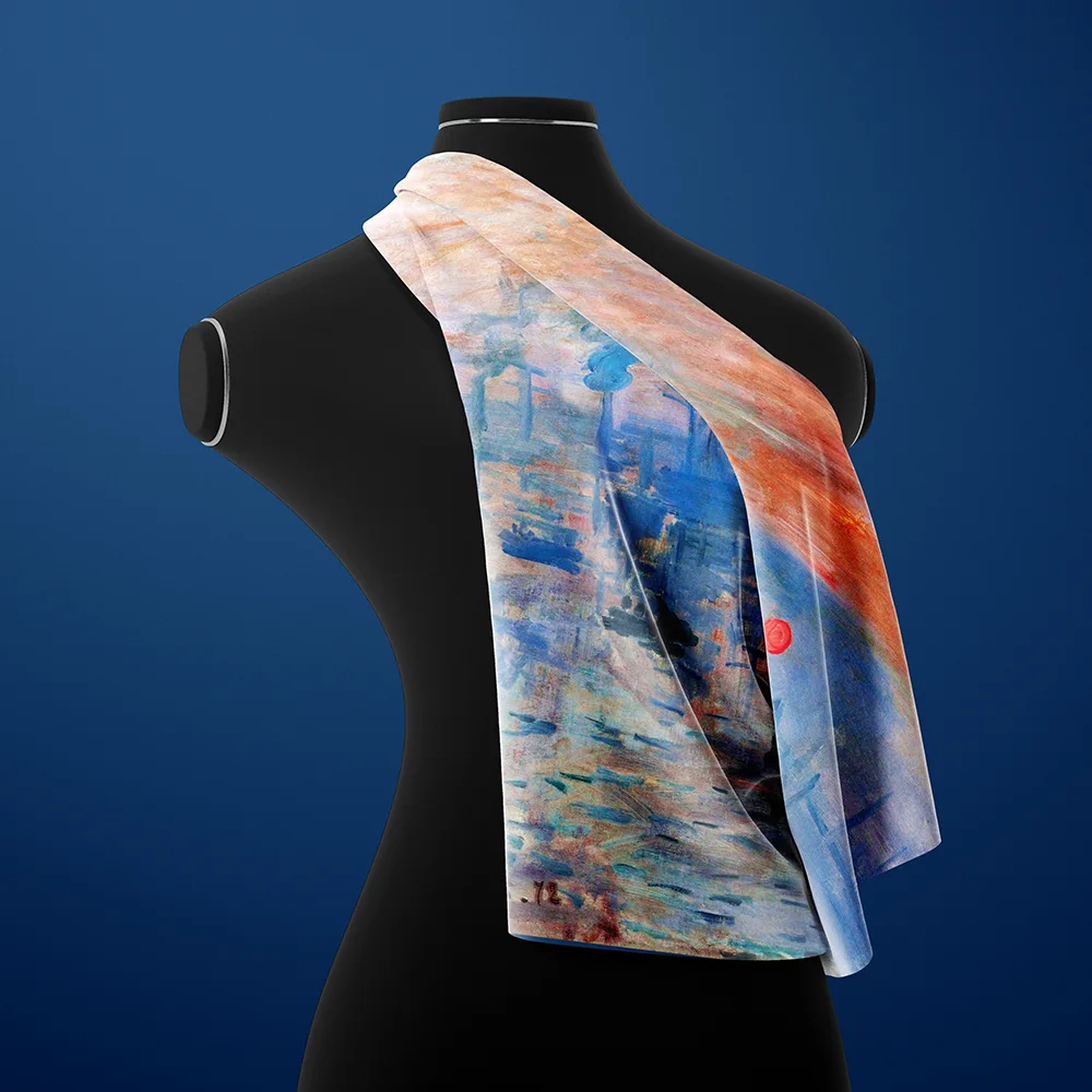 Wear Claude Monet’s Impression, Sunrise on silk — stand out from the crowd.