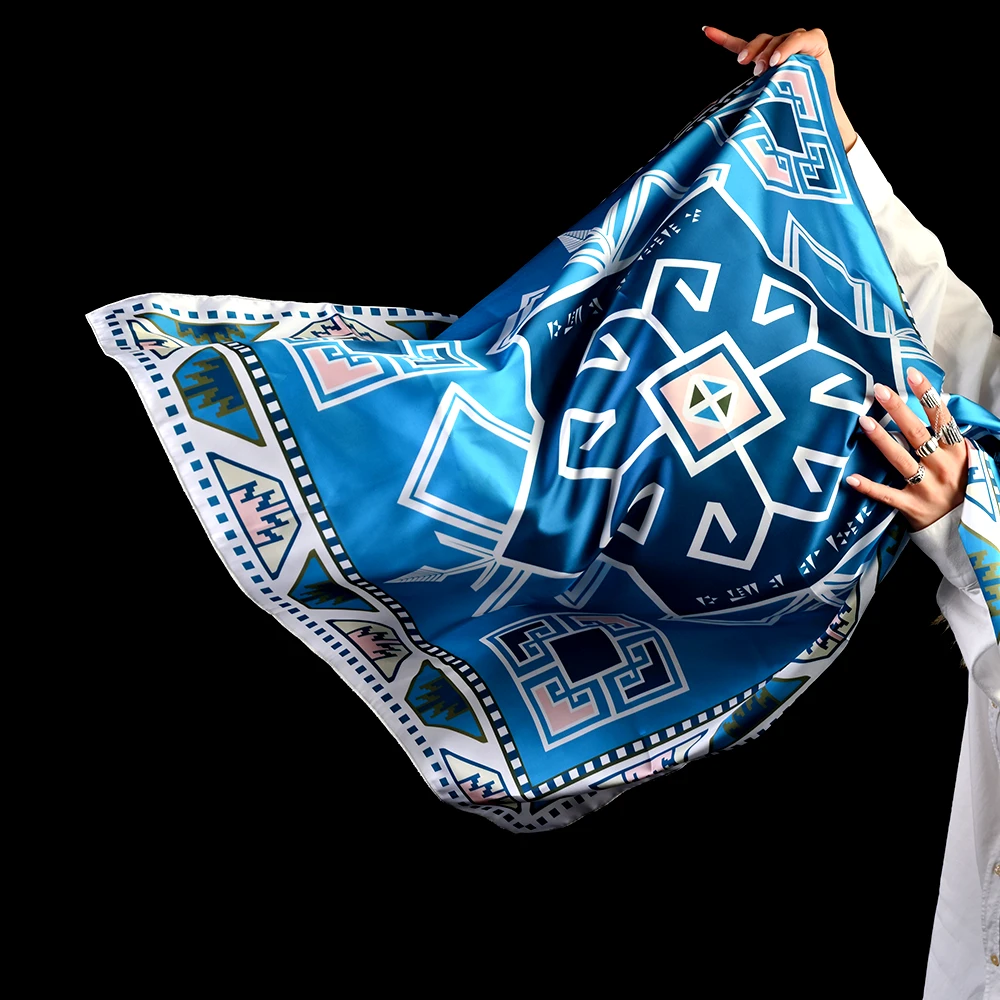 Silk scarf “Urartian Ornaments in the Colors of Van Gogh’s ‘Almond Blossom’ Painting”, code 202.