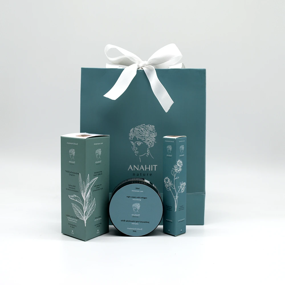 The gift set includes 3 care products in branded packaging. It is suitable for all ages and skin types.