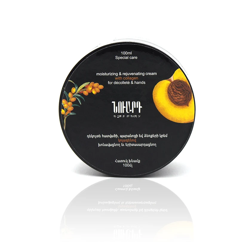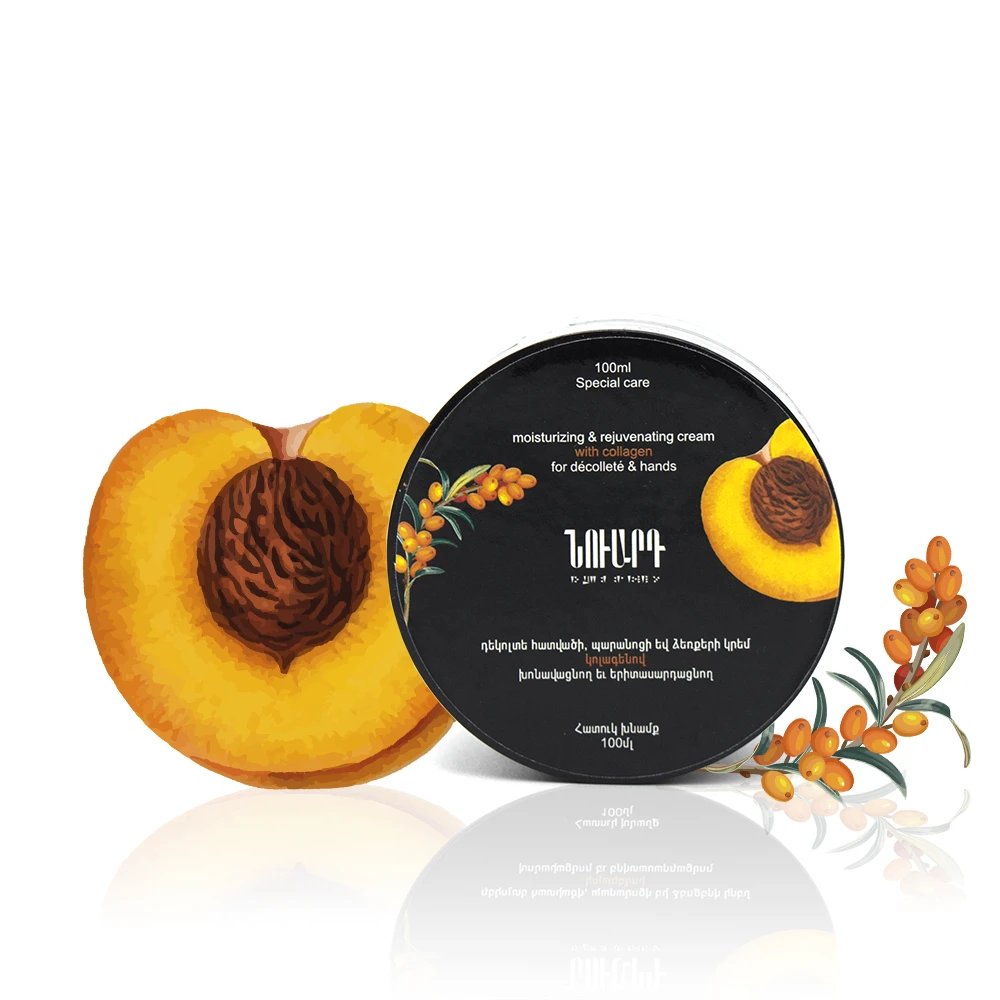 ՆՈՒԱՐԴ-ի այս խոնավացնող կրեմը նախատեսված է դեկոլտեի հատվածի, պարանոցի և ձեռքերի համար, այն պարունակում է դեղձի կորիզայուղ, չիչխանի կորիզայուղ, կոլագեն, որոնք ունեն խոնավացնող, երիտասարդացնող և վերականգնող գերազանց հատկություններ: Կրեմում առկա չիչխանի յուղն ունի մաշկը պաշտպանող և վերականգնող բացառիկ հատկություն, այն հարուստ է վիտամին E-ով: Դեղձի կորիզայուղը սնուցում և թարմացնում են մաշկը` տալով թավշյա փափկություն: Կոլագենը մաշկի համար կարևորագույն սպիտակուց է, որը պատասխանատու է վերջինիս երիտասարդության և առողջության, հետևաբար նաև գեղեցկության համար։