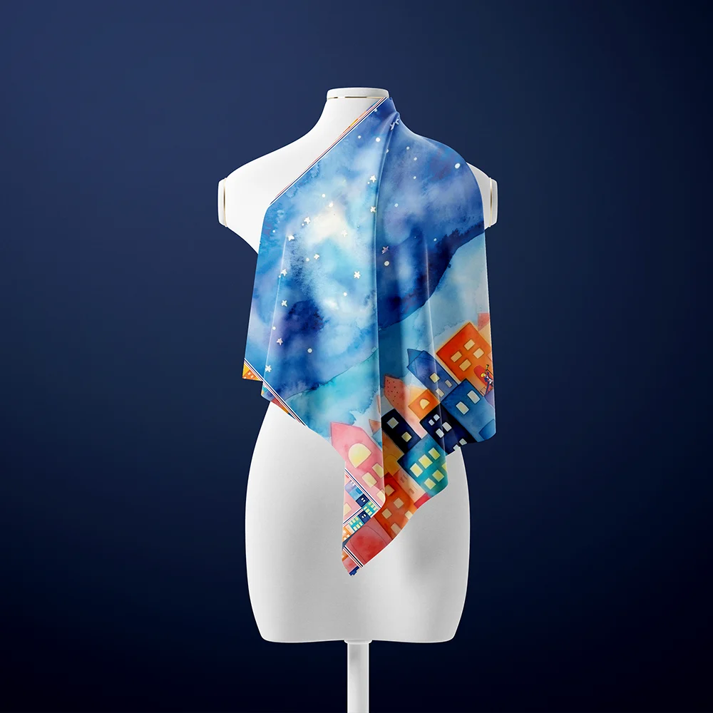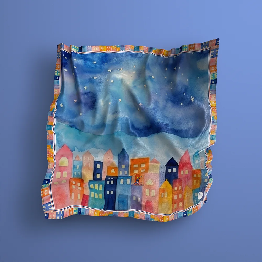 ԱՆԱՀԻՏ-ի այս մետաքսե շարֆը ոգեշնչված է Անտուան դը Սենտ-Էքզյուպերիի «Փոքրիկ իշխանը» հեքիաթի հայկական հրատարակության նուրբ ու երազային գեղանկարչությամբ։ Մետաքսի վրա վերածված այս պատմությունը կփոխանցի հեքիաթային շունչ ձեր կերպարին՝ հաղորդելով գույն, խորություն և նրբագեղություն։ Շարֆը վառ շեշտադրում կդառնա ձեր արտաքինում՝ ընդգծելով ձեր անհատականությունը թե առօրյա ջինսերի, թե երեկոյան զգեստի հետ։