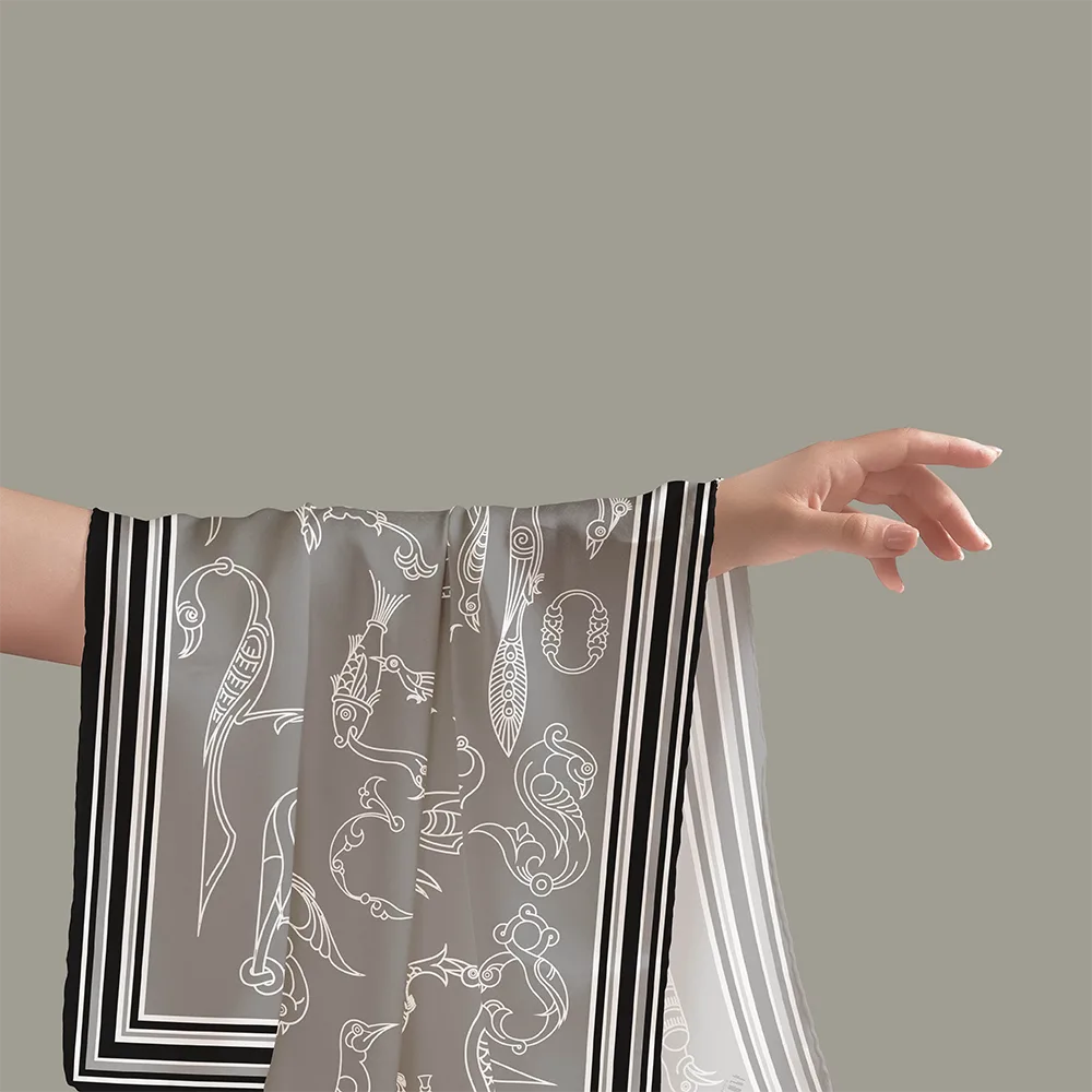 Մետաքսե շարֆ «Թռչնատառեր. մոնոքրոմ» արծաթագույն երանգներով, կոդ-514