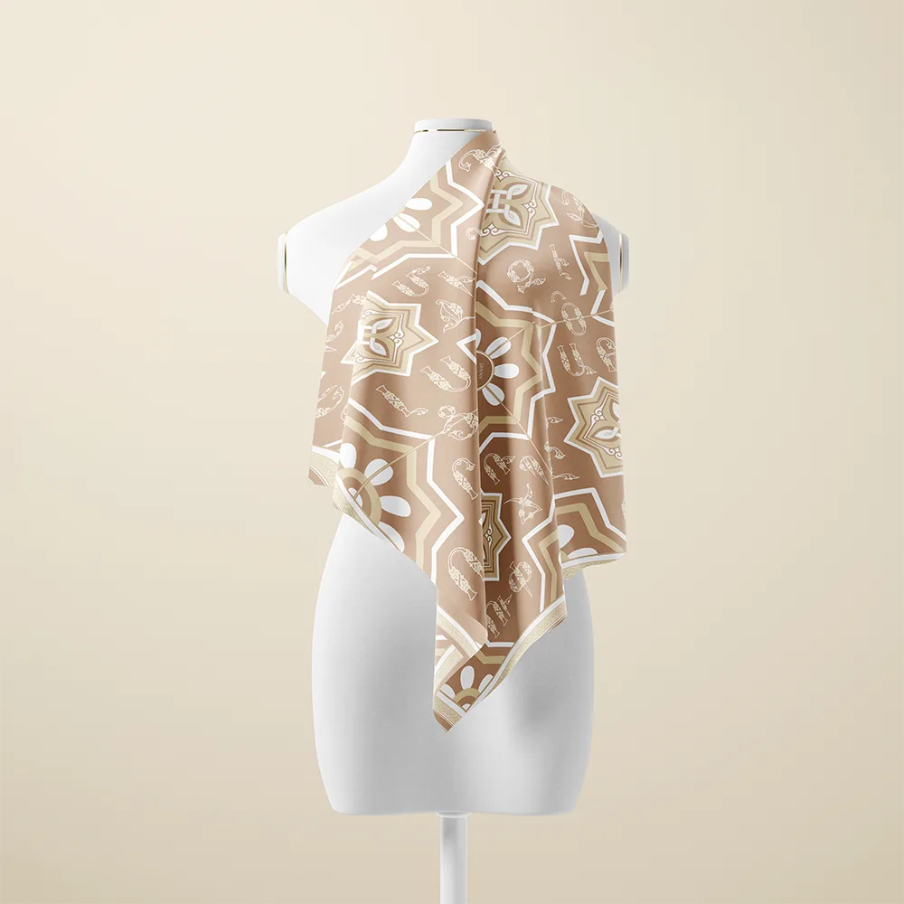 ԳլխավորԽանութԱնահիտ Մետաքսե շարֆ «Թռչնատառեր մուգ և բաց մարմնագույն երանգներով», կոդ-418