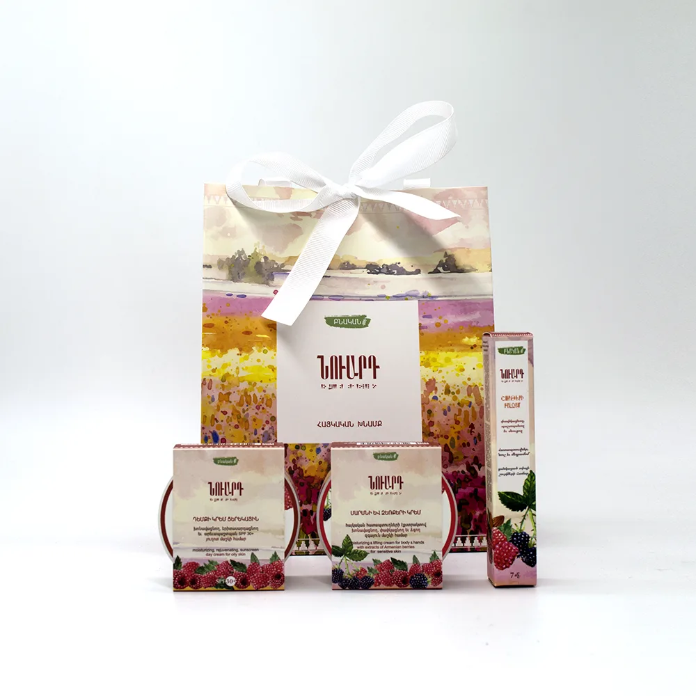 Նվեր-հավաքածու 9` յուղոտ մաշկի համար` ցերեկային կրեմ, ձեռքերի ու մարմնի կրեմ և շրթունքի բալզամ հատապտղային