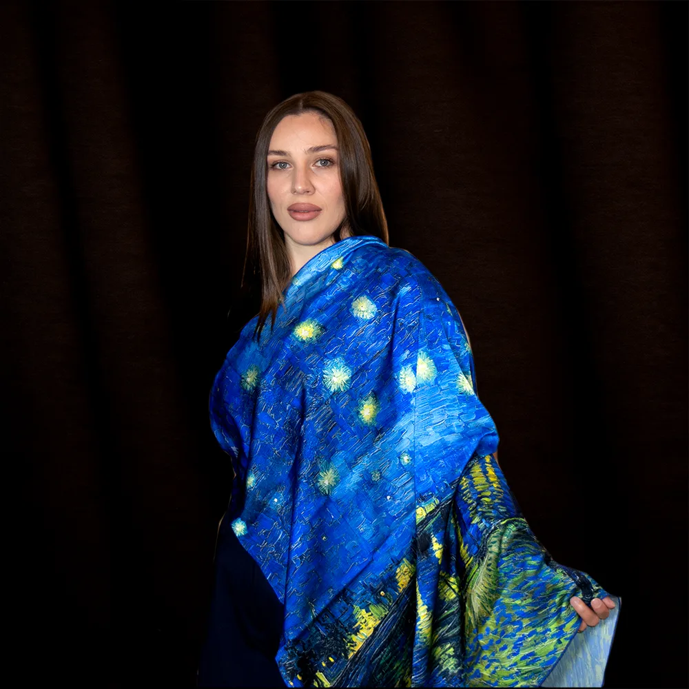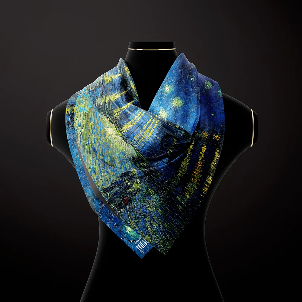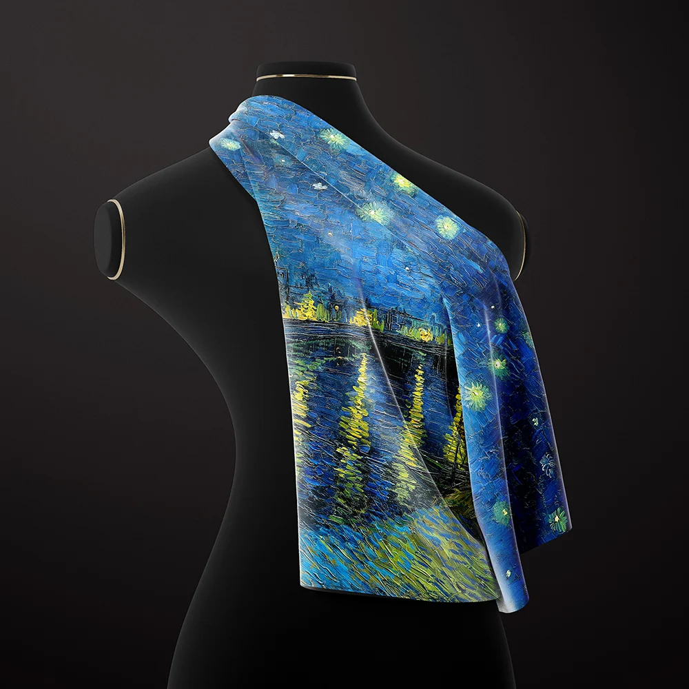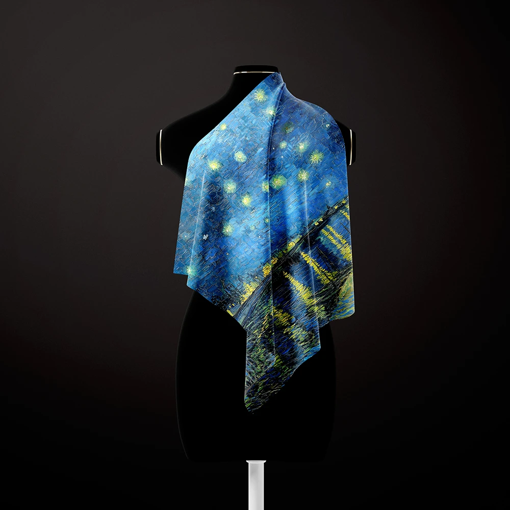 Окутайтесь в картину Ван Гога «Звёздная ночь над Роной» — воплощённую на шёлке.