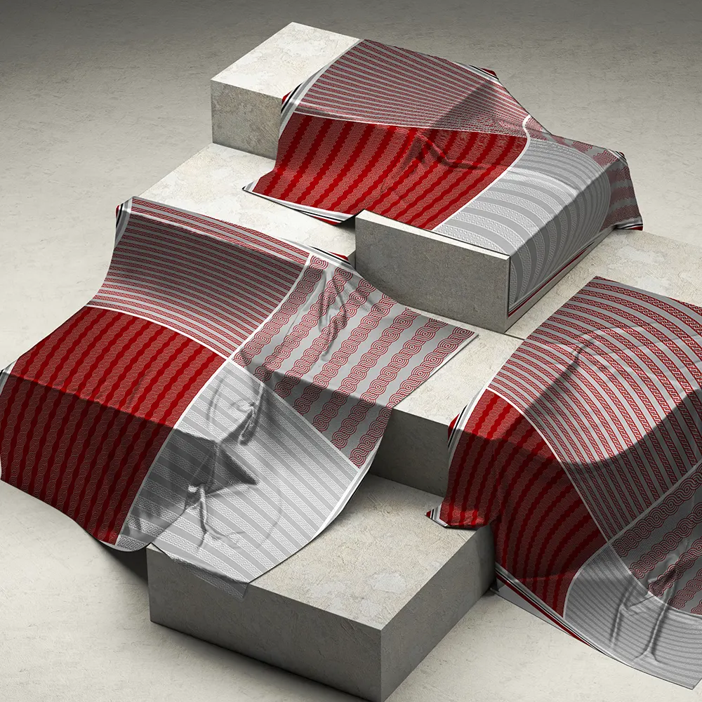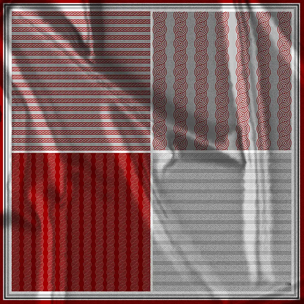 Шёлковый шарф «Линии вечности» в винно-бордовых тонах, код-503