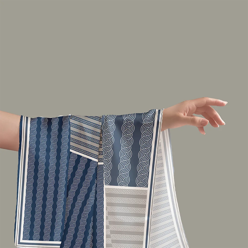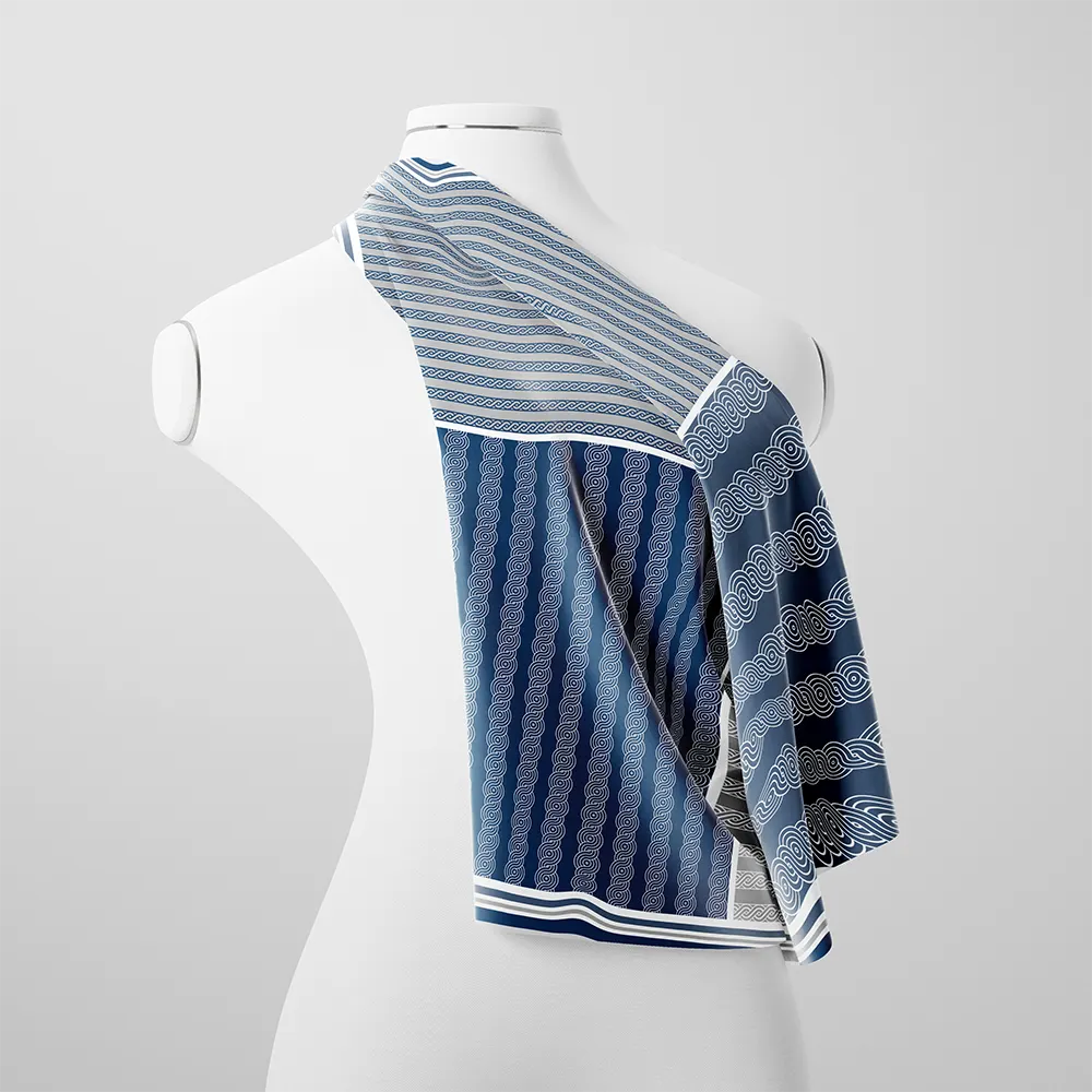 Шёлковый шарф «Линии вечности» в цвете морской волны, код-502