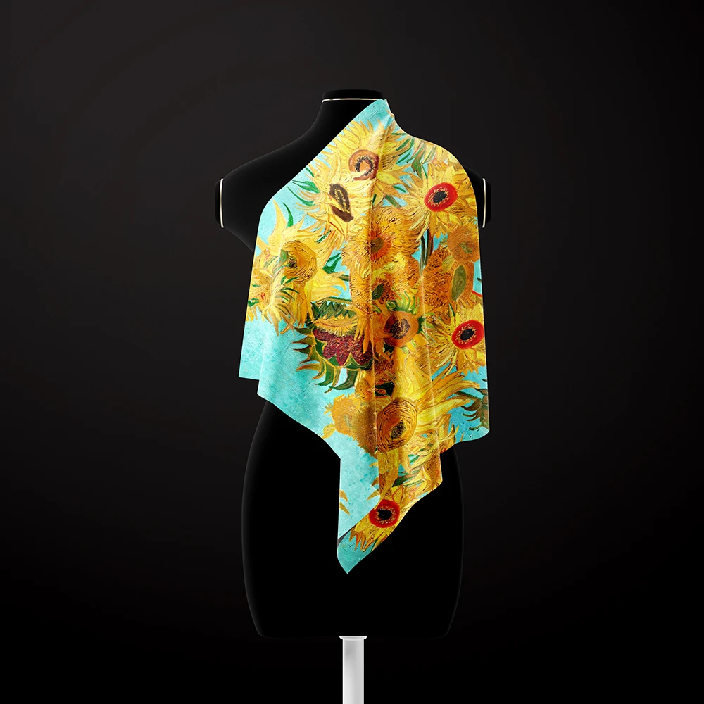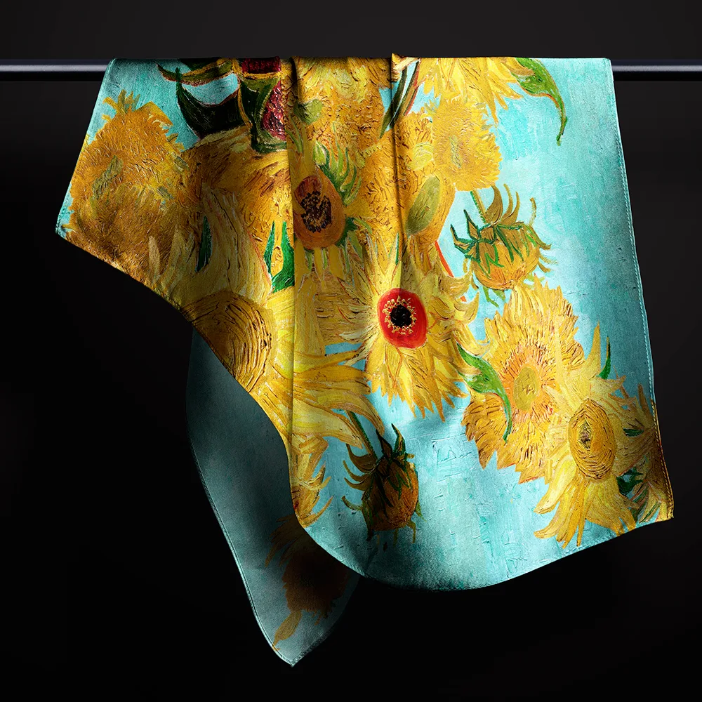 ГлавнаяОнлайн-шопНуардШарфы Шелковый шарф «Коллаж из подсолнухов Ван Гога», код 245.
