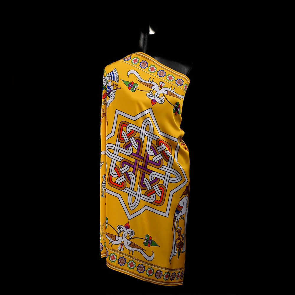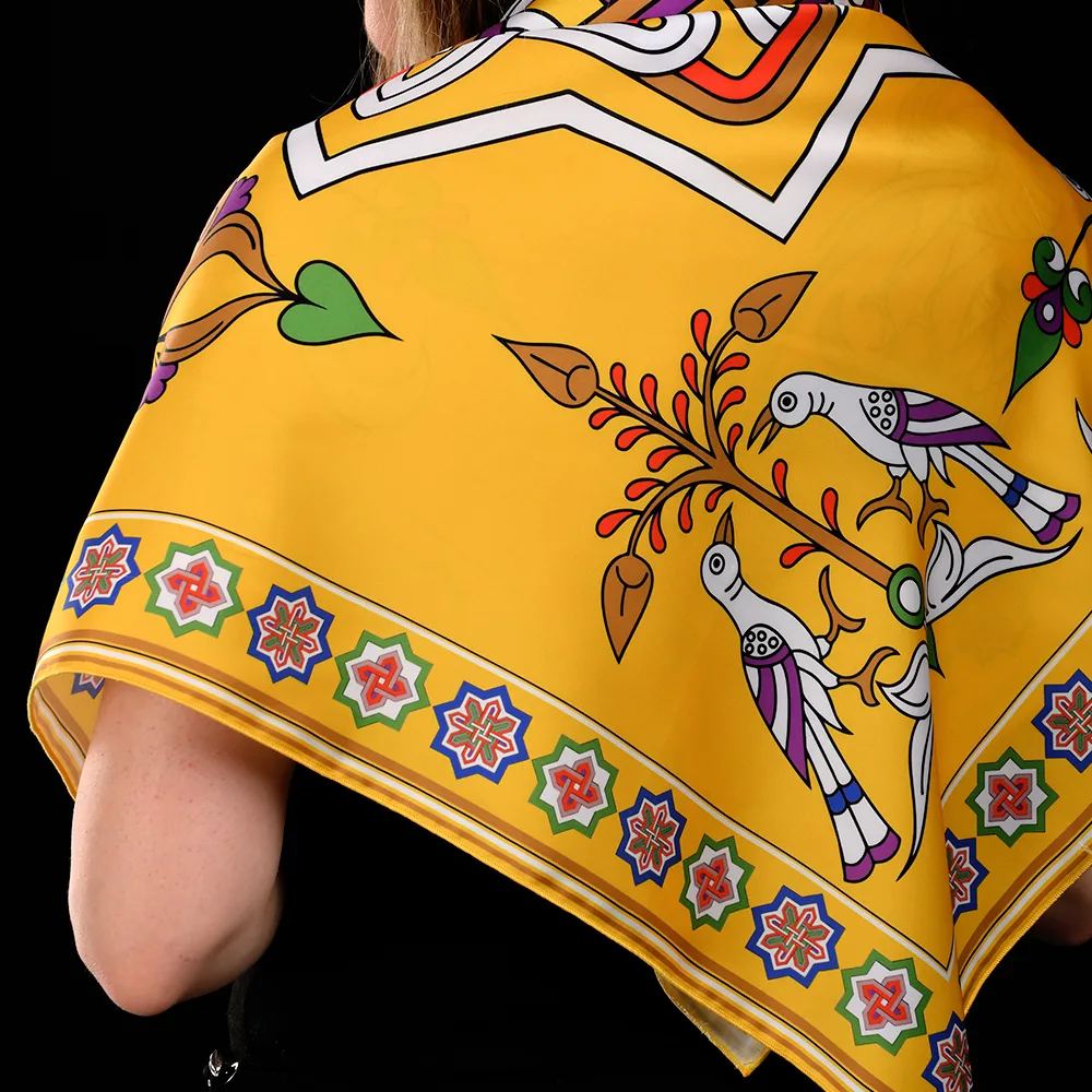 Шёлковый шарф воплощает любовь в гармоничном сочетании золотистых и жёлтых оттенков.